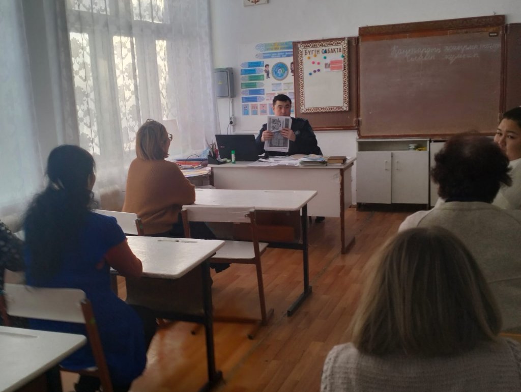 29.01. 2026 ж. Учаскелік инспектор Абаканов С Қ мектеп педагогтерімен интернет алаяқтықтың алдын алу бойынша түсіндіру әңгімесін өткізді