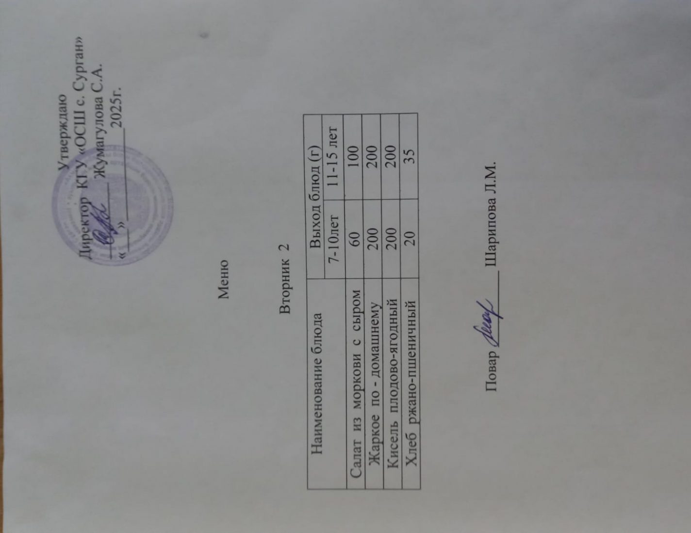 Мектеп асханасының 2021-2022 оқу жылына арналған тамақтану кестесі