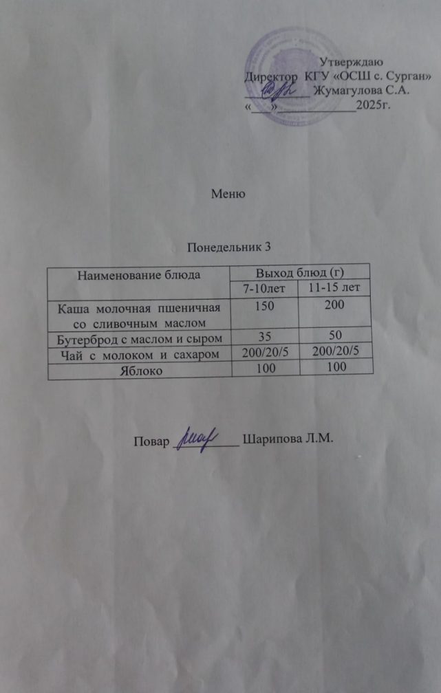 Мектеп асханасының 2021-2022 оқу жылына арналған тамақтану кестесі