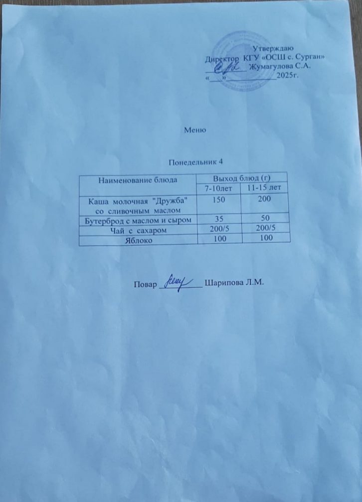 2024-2025 оқу жылында тамақтандыру