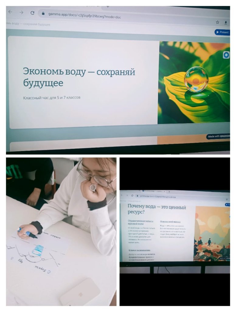 Біздің мектебімізде 1-9 сынып оқушылары арасында " Суды үнемде - болашақты сақта" тақырыбында сынып сағаты өтті