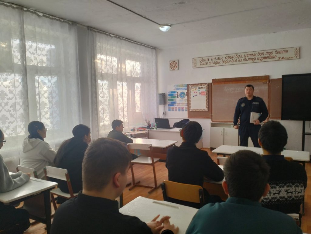 29.01.2026 ж. 7 -9 сынып оқушылары арасында учаскелік инспектор Абаканов С. Қ.-пен кездесу өтті